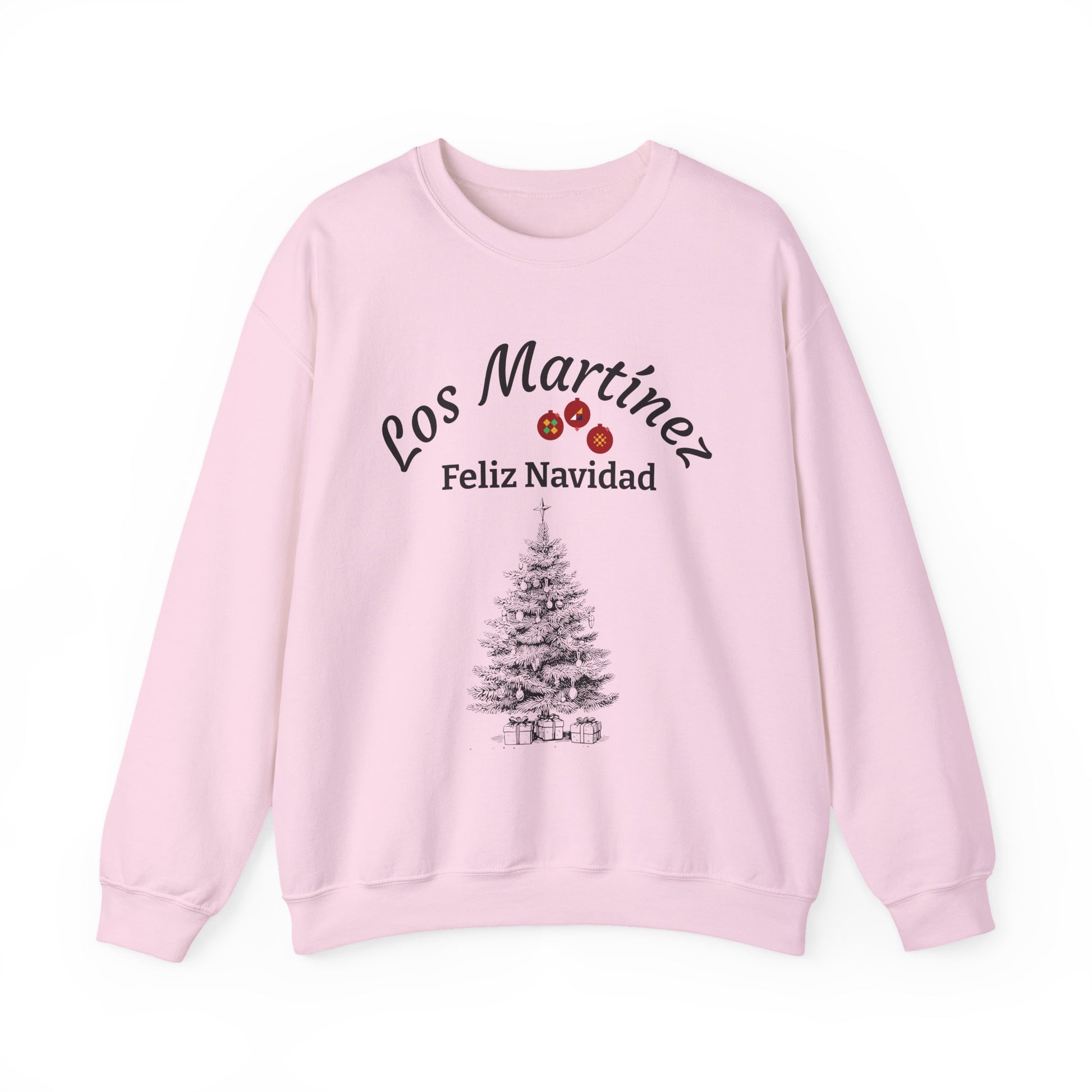 Esta sudadera ofrece un estilo cómodo y discreto para la temporada navideña. Presenta un diseño limpio con un árbol de Navidad ilustrado, el saludo “Feliz Navidad” y la opción de personalizar el nombre de tu familia. La impresión nítida sobre tela blanca crea un acabado clásico y fácil de combinar para el invierno.